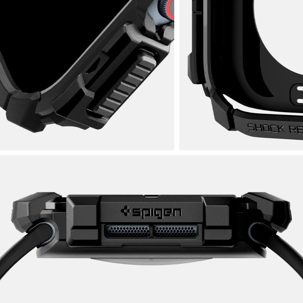 Apple Watch 10-11 (42 mm), Szilikon védőkeret, ütésálló, szíj nélkül, Spigen Rugged Armor, fekete
