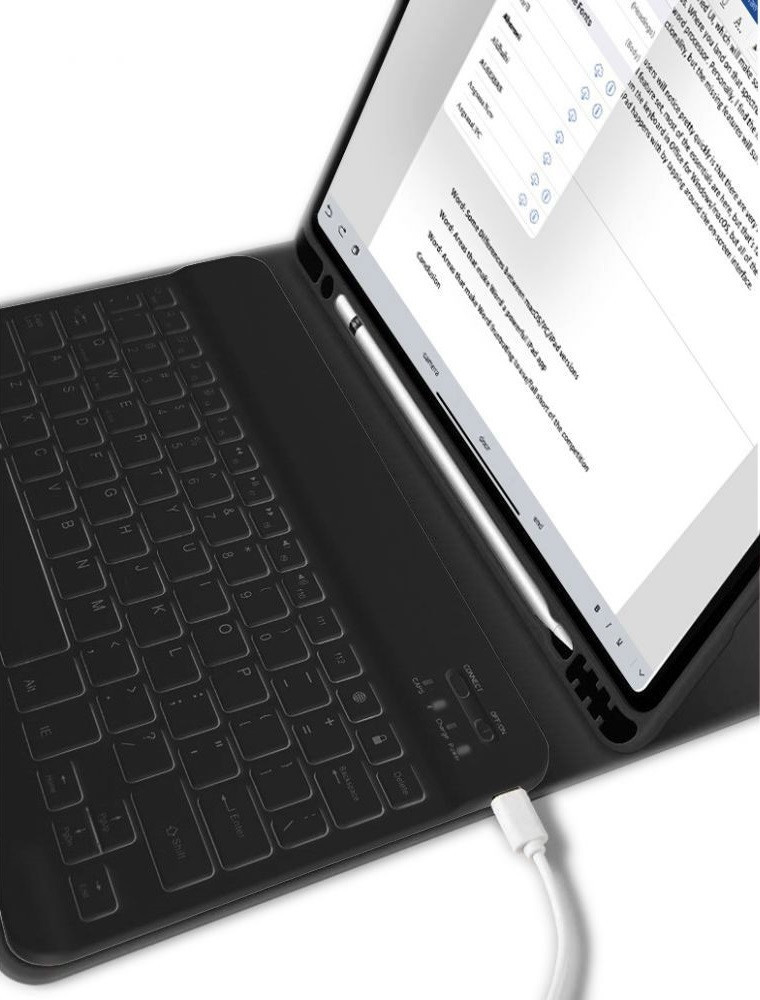 Apple iPad 10.9 (2022) / iPad 11 (2025), Bluetooth billentyűzetes mappa tok, érintőceruza tartó, érintőceruza nélkül, TP SC Pen Holder + Keyboard, fekete