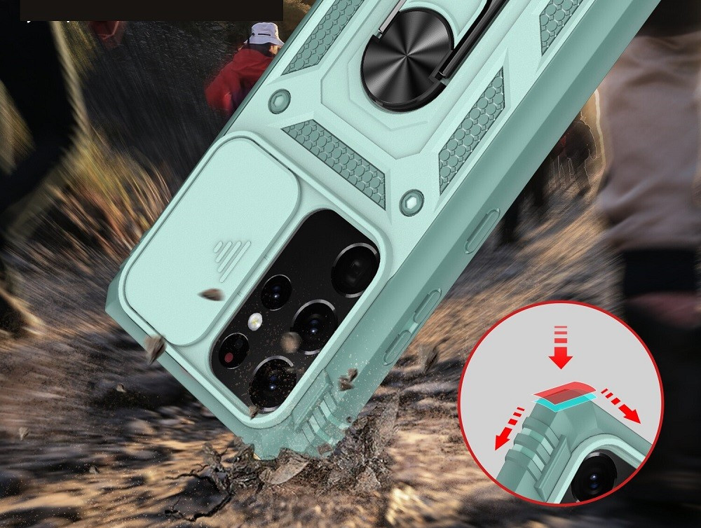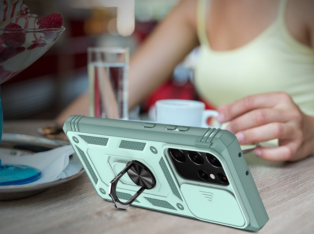 Apple iPhone 11 Pro Max, Műanyag hátlap védőtok és előlapi keret, szilikon belső, közepesen ütésálló, kamera védelem, telefontartó gyűrű, Wooze Military Armor, rózsaszín/zöld