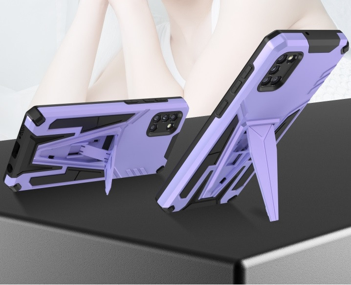 Apple iPhone 14 Pro Max, Műanyag hátlap védőtok szilikon belső, közepesen ütésálló, kitámasztóval, Wooze Supportive Care, lila