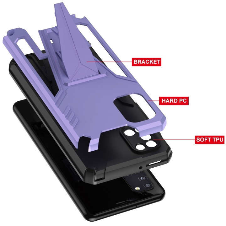 Apple iPhone 14 Pro, Műanyag hátlap védőtok szilikon belső, közepesen ütésálló, kitámasztóval, Wooze Supportive Care, lila