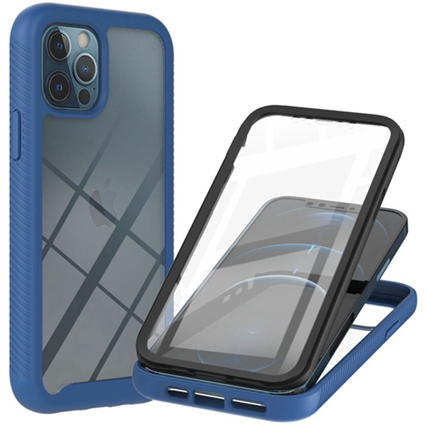 Apple iPhone 14 Pro, Szilikon hátlap és műanyag előlapi tok, elő- és hátlapi üveggel, közepsen ütésálló, Wooze Power Case, fekete/kék
