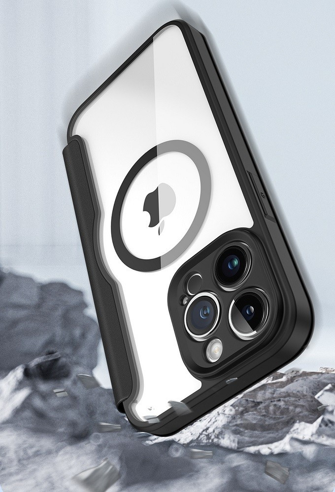 Apple iPhone 15 Pro, Oldalra nyíló tok, stand, közepesen ütésálló, Magsafe kompatibilis, Dux Ducis Skin Pro Magsafe, lila