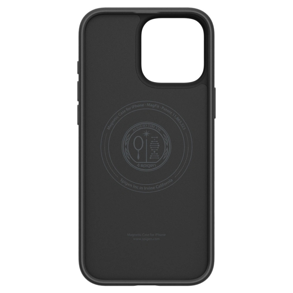 Apple iPhone 16 Pro, Szilikon tok, Magsafe töltővel kompatibilis, háromszög minta, érintő funkciós gombfedéllel, Spigen Liquid Air "T" Mag, fekete