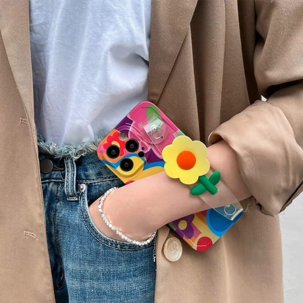 Apple iPhone 17 Pro Max, Szilikon tok, kézpánttal, virág minta, Flower Case, mintás
