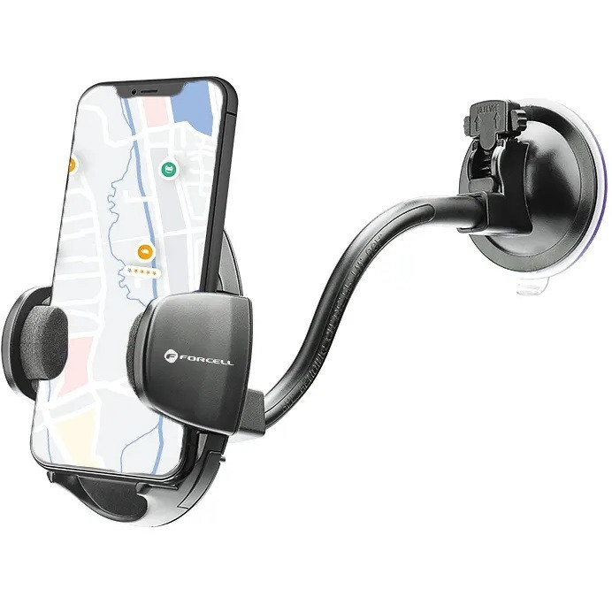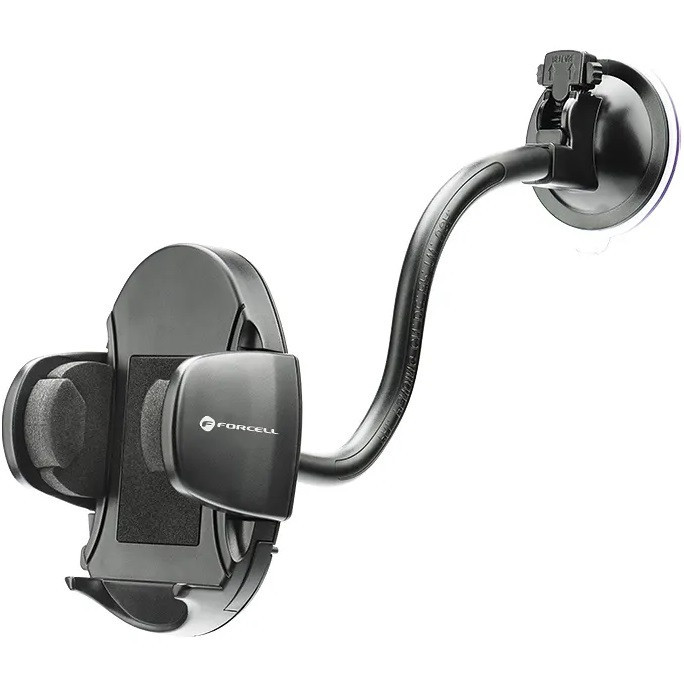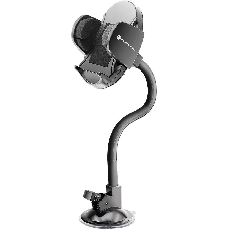 Autós tartó, Univerzális, szélvédőre vagy szellőzőre vagy műszerfalra rögzíthető, tapadókorongos, 40 - 100 cm készülékekhez, Forcell Oval 27, fekete
