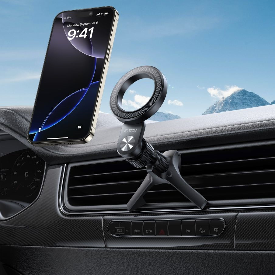 Autós tartó, szellőzőrácsra rögzíthető, 360°-ban forgatható, mágneses, Magsafe kompatibilis, Magsafe gyűrűvel, TP N53 Magnetic Magsafe, fekete