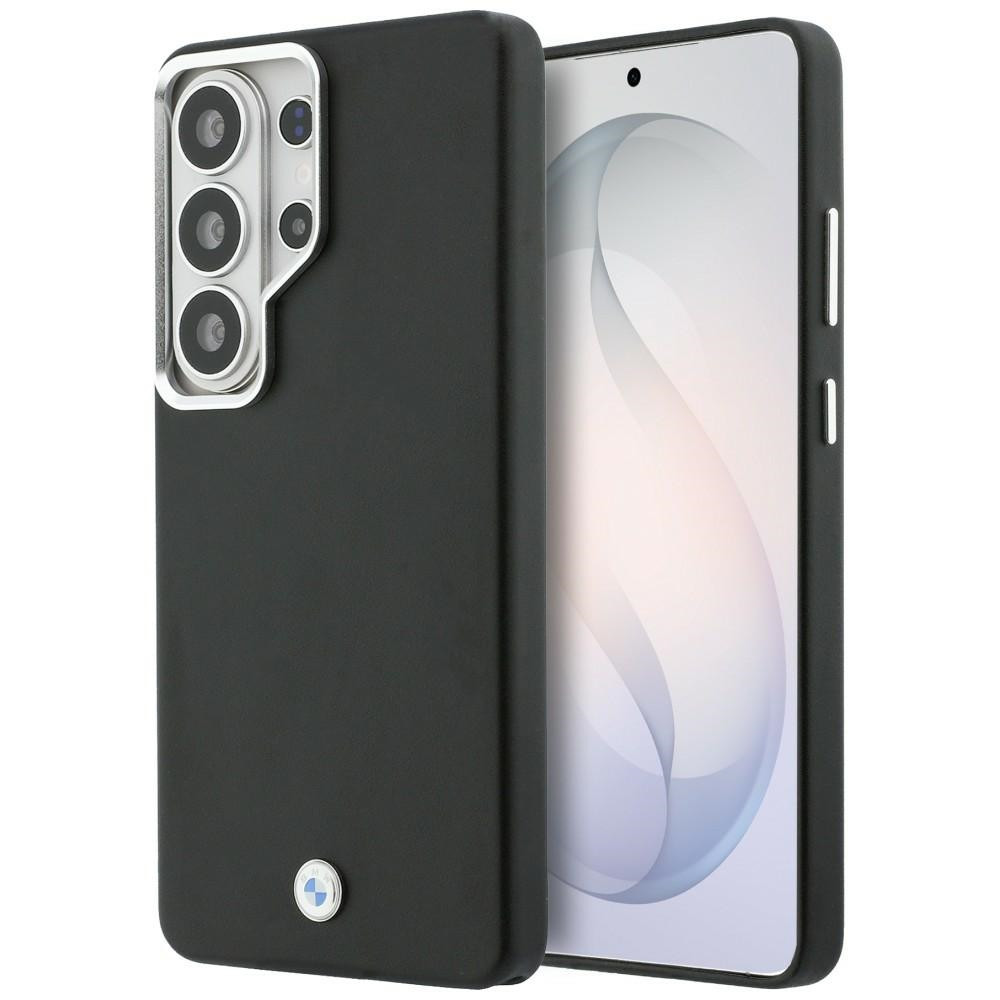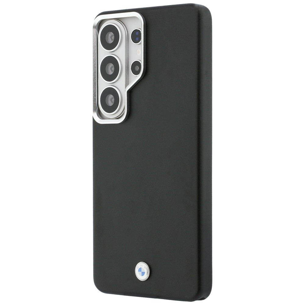 BMW Signature PU Leather Metal Logo Samsung Galaxy S26 Ultra MagSafe hátlap tok kameravédő peremmel, fekete