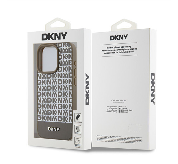 DKNY PU Leather Repeat Pattern Bottom Stripe Apple iPhone 15 Pro tok, barna
