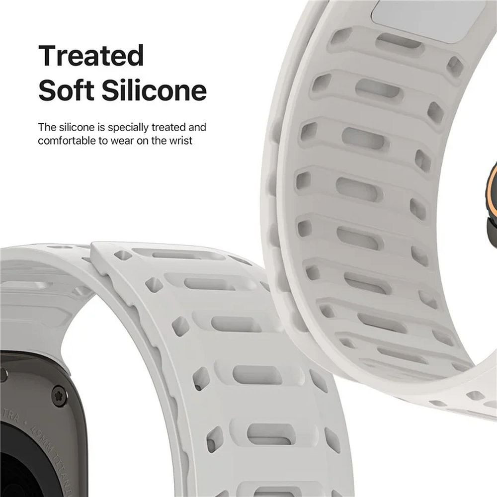 A Dux Ducis CS Apple Watch szíj, amely rugalmas szilikonból készült, beépített mágnesekkel, elegáns és rendkívül kényelmes kiegészítő. Könnyen fel- és levehető, ugyanakkor tökéletesen illeszkedik a csuklóhoz.