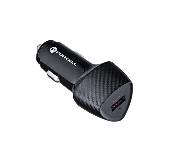 Autóstöltő a FORCELL CARBON sorozatból. Legfeljebb 18 W teljesítményigényű készülékekhez tervezték. Univerzális USB töltőporttal felszerelve. Támogatja a QC 3.0 gyorstöltési protokollt. Többszintű biztonsági rendszerrel rendelkezik.