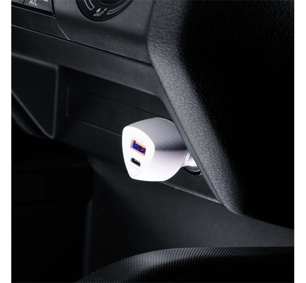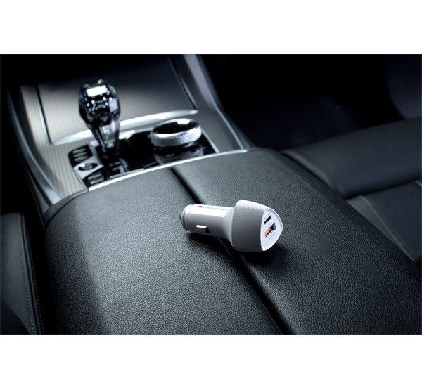 Rendkívül sokoldalú autós töltő a FORCELL CARBON sorozatból. Két töltőporttal felszerelve: USB-C, USB. Támogatja a QC 3.0 és PD 3.0 gyorstöltési protokollokat. Többszintű biztonsági rendszerrel rendelkezik.