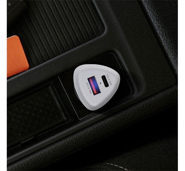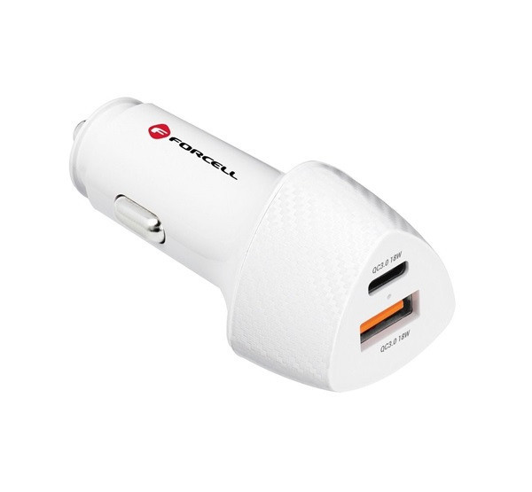 FORCELL F-ENERGY CC50-1A1C autós töltő USB-C + USB-A, PD QC3.0, 3A, 38W, fehér