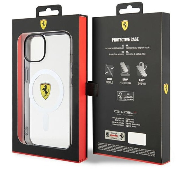 Ferrari Outline iPhone 14 / 15 / 13 MagSafe kompatibilis kemény hátlap tok, átlátszó FEHMP14SURKT