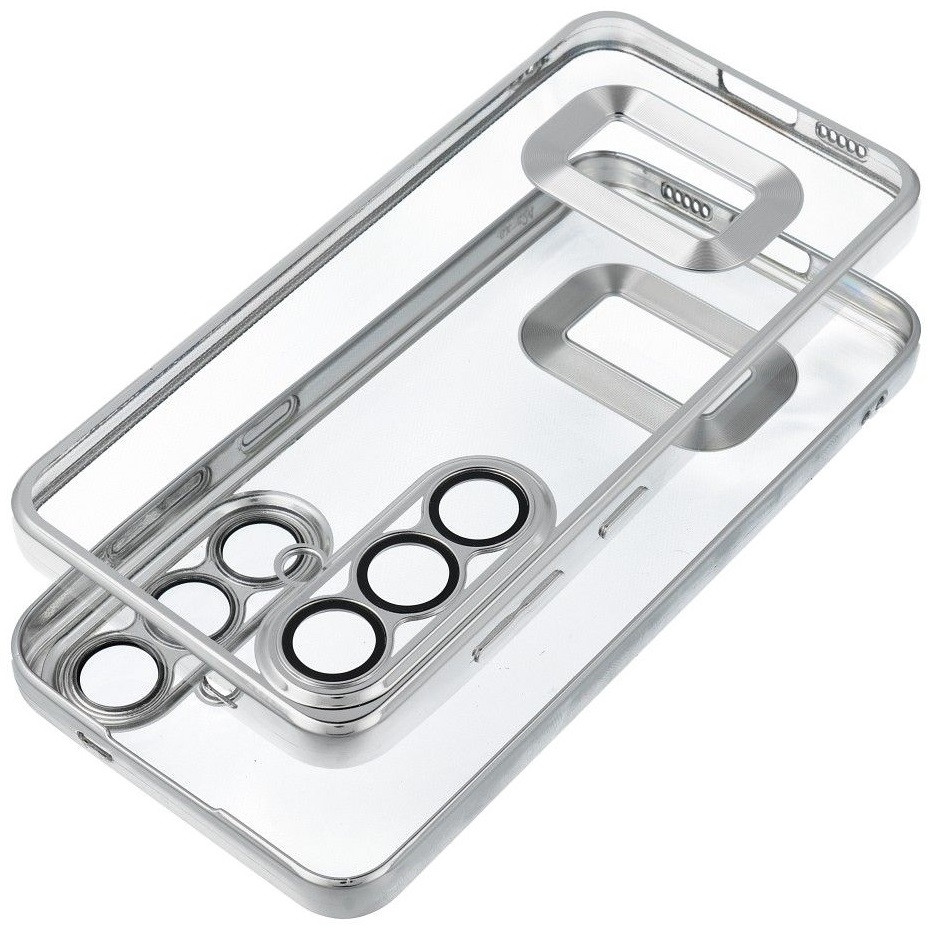Glam Samsung Galaxy S25 szilikon tok kameravédő-lencsével, ezüst
