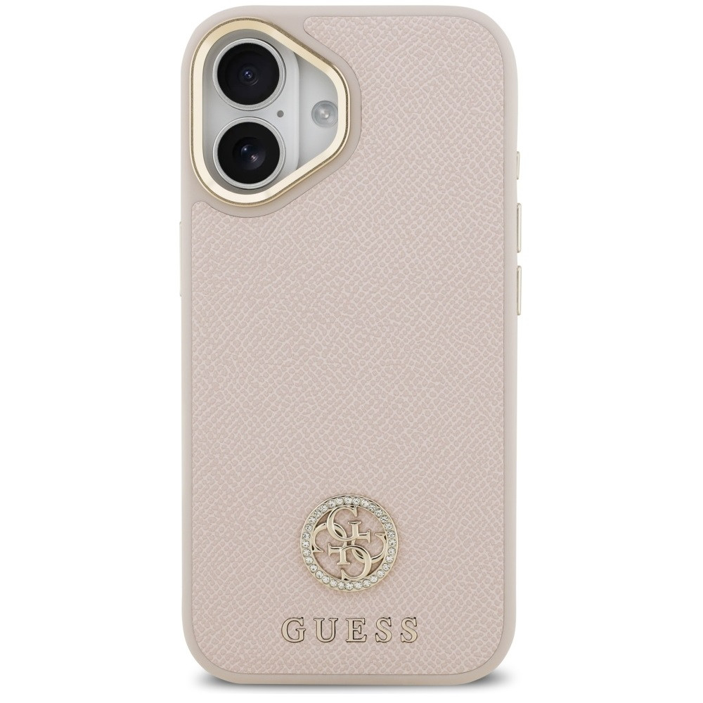 Guess 4G Grained Strass Logo Apple iPhone 17 MagSafe tok kameravédő peremmel, rózsaszín-arany