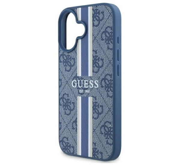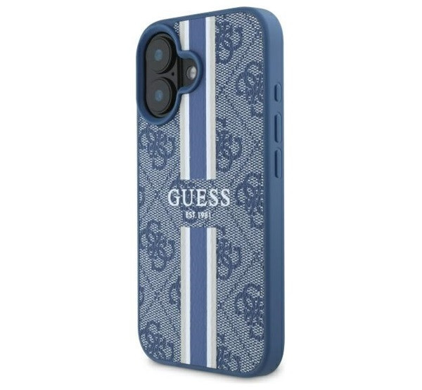 Guess 4G Printed Stripes iPhone 16 MagSafe kemény hátlap tok, kék GUHMP16SP4RPSB