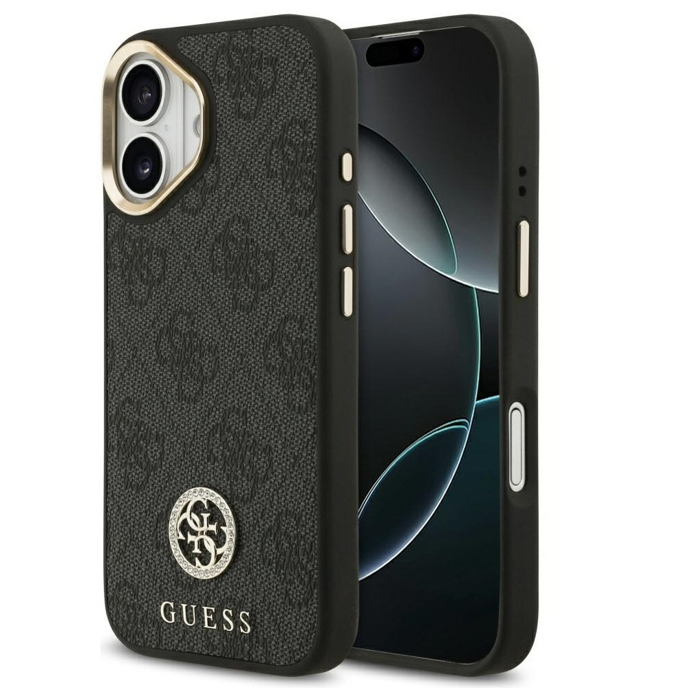 Guess 4G Strass Logo Apple iPhone 17 MagSafe tok kameravédő peremmel, fekete-arany