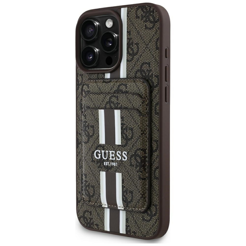 Guess 4G Stripes iPhone 16 Pro MagSafe hátlap tok kártyatartóval, barna