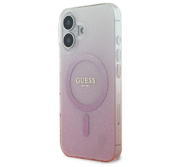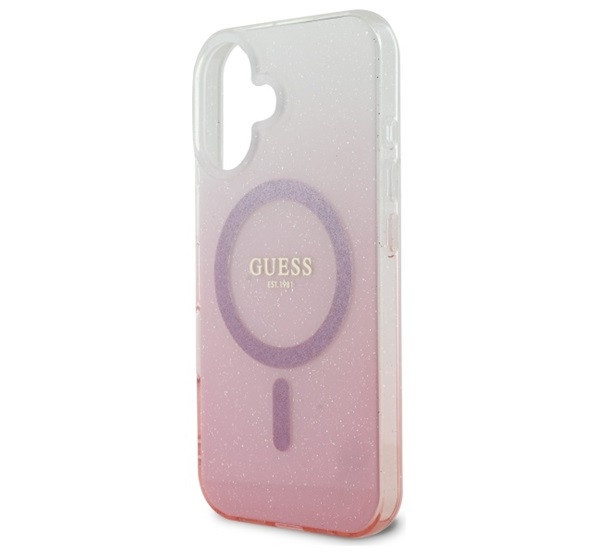 Guess IML Glitter Gradient iPhone 16 Plus MagSafe kemény hátlap tok, rózsaszín GUHMP16MHGRCELP