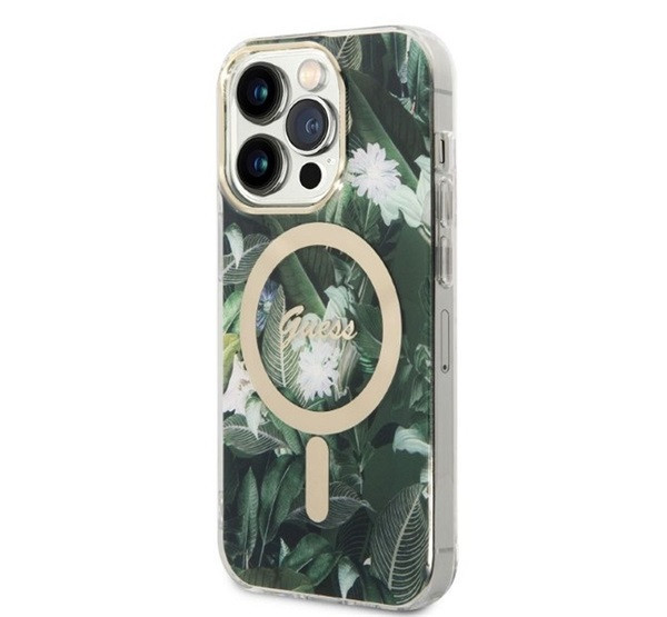 Guess Jungle MagSafe Apple iPhone 14 Pro Max hátlap tok, zöld + MagSafe töltő