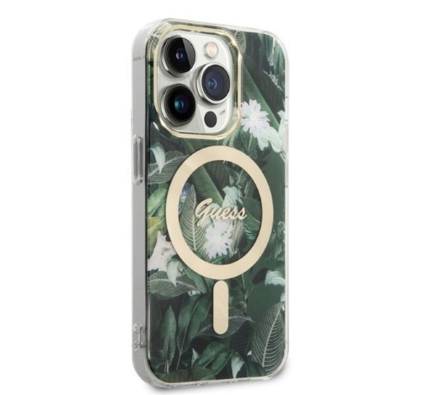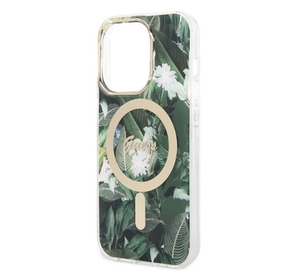 Guess Jungle MagSafe Apple iPhone 14 Pro hátlap tok, zöld + MagSafe töltő
