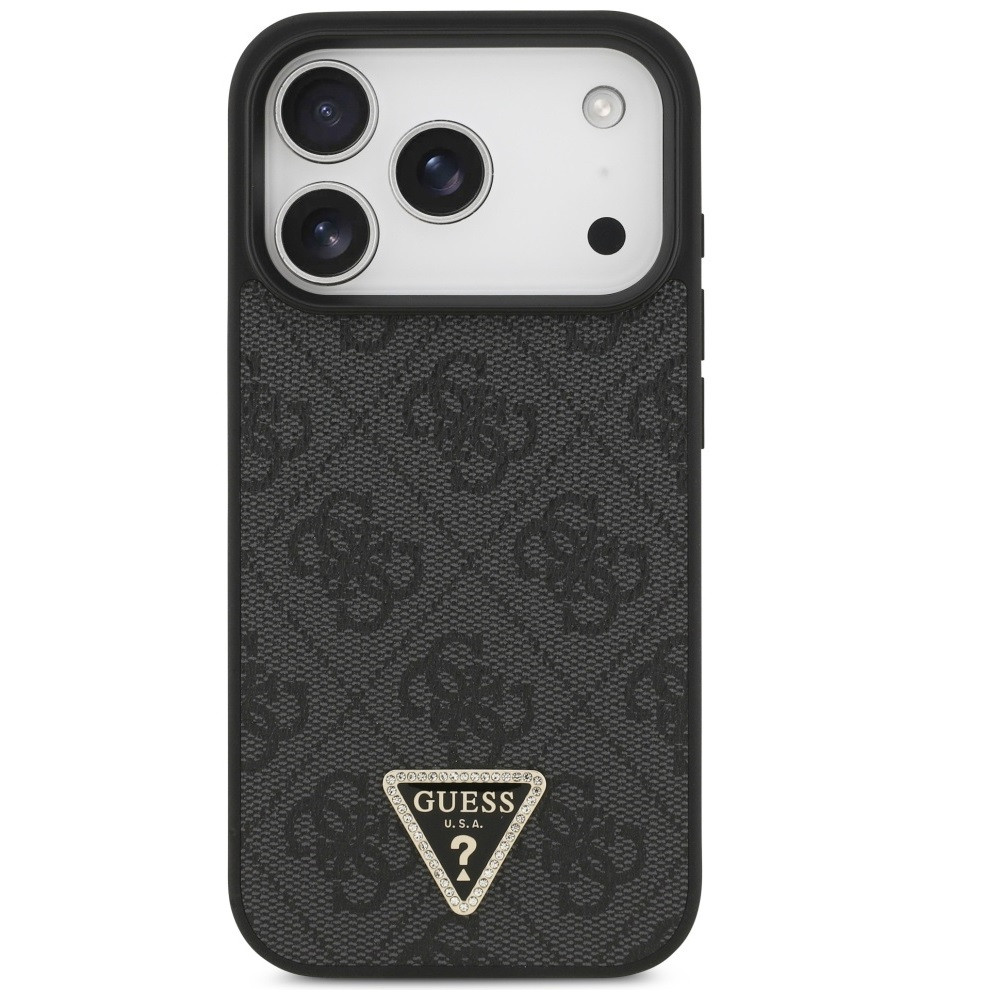 Guess Leather 4G Triangle Strass iPhone 17 Pro kemény hátlap tok, fekete