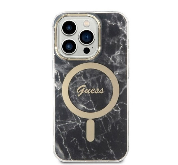 Guess Marble MagSafe Apple iPhone 14 Pro Max hátlap tok, fekete + MagSafe töltő