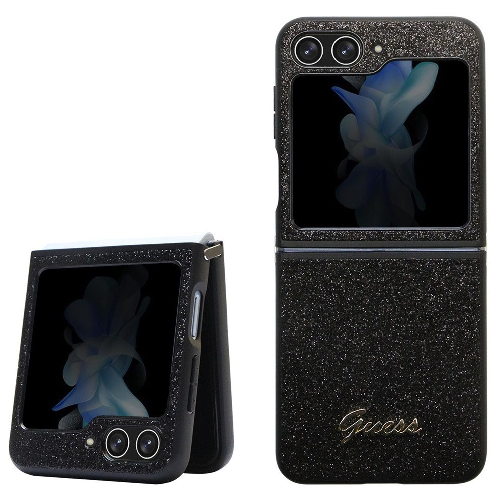 Guess PC/TPU Glitter Flakes Metal Logo Samsung Galaxy Z Flip6 hátlap tok, fekete