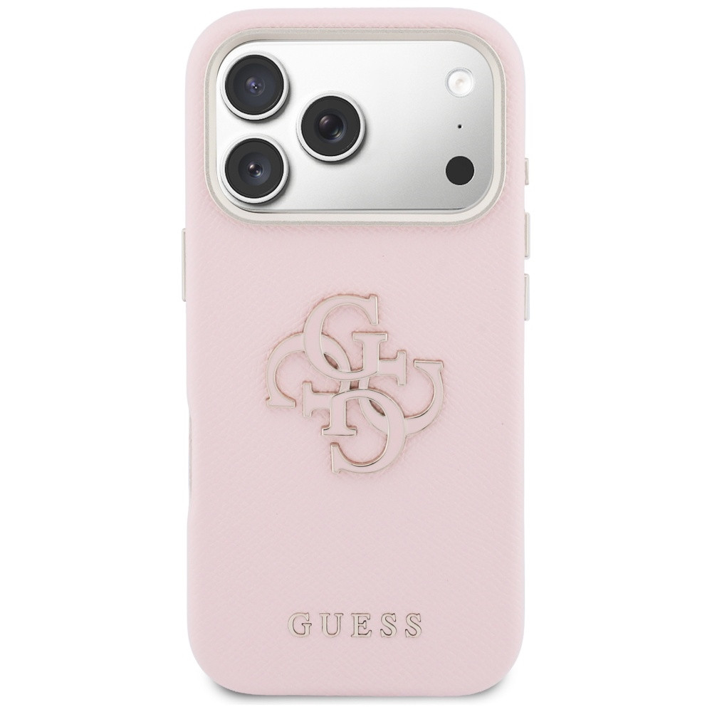 Guess PU Resin Logo Apple iPhone 17 Pro tok kameravédő peremmel, rózsaszín-arany