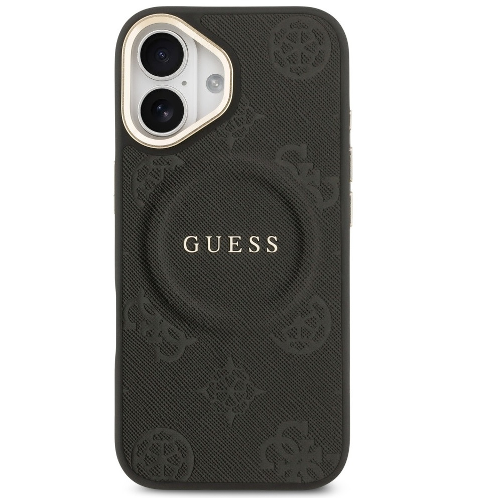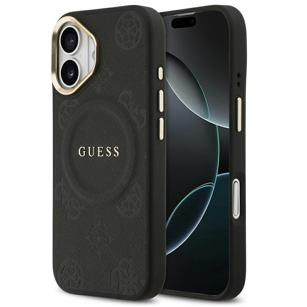 Guess Peony Hot Stamp Apple iPhone 17 MagSafe tok kameravédő peremmel, fekete-arany