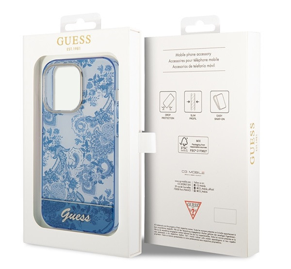 Guess Porcelain Collection Apple iPhone 14 Pro hátlap tok , kék