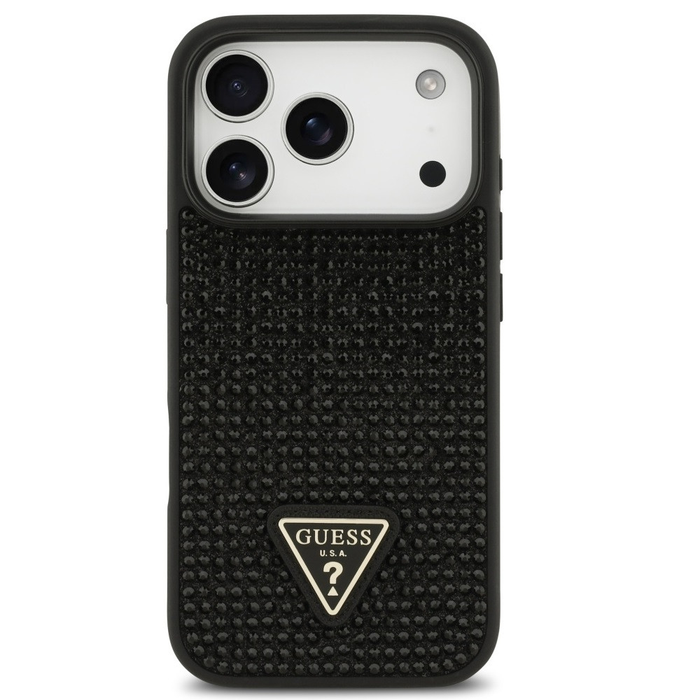 Guess Rhinestone Triangle Apple iPhone 17 Pro hátlap tok, fekete