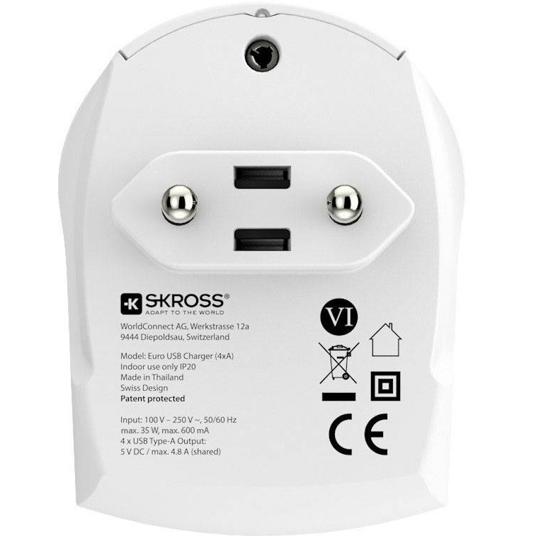 Hálózati töltő adapter, 24W, 4 x USB aljzat, SKRoss, fehér