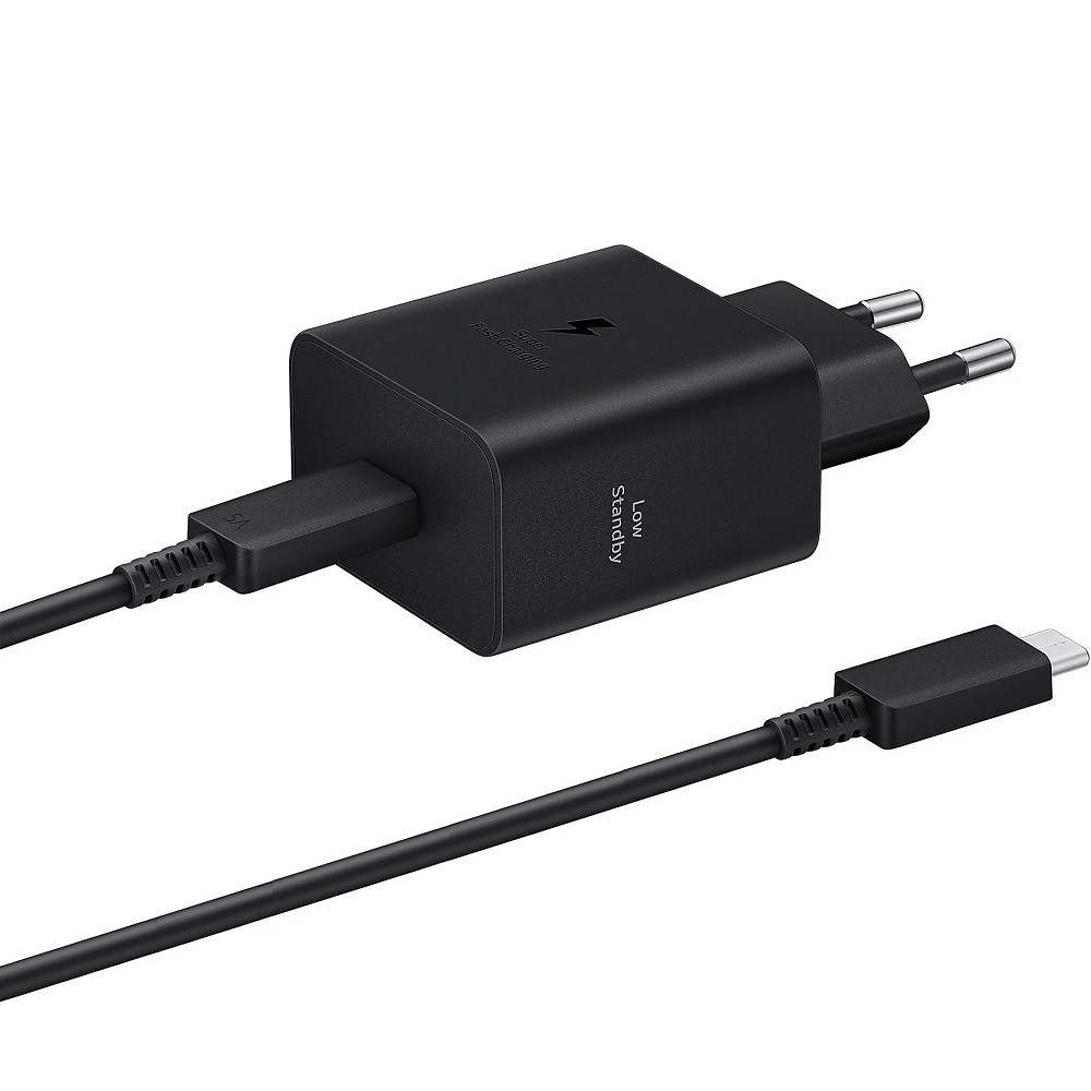 Hálózati töltő adapter, 45W, USB Type-C aljzat, USB Type-C - USB Type-C kábellel, PD, PDO / PPS, gyorstöltés, Samsung, fekete, gyári