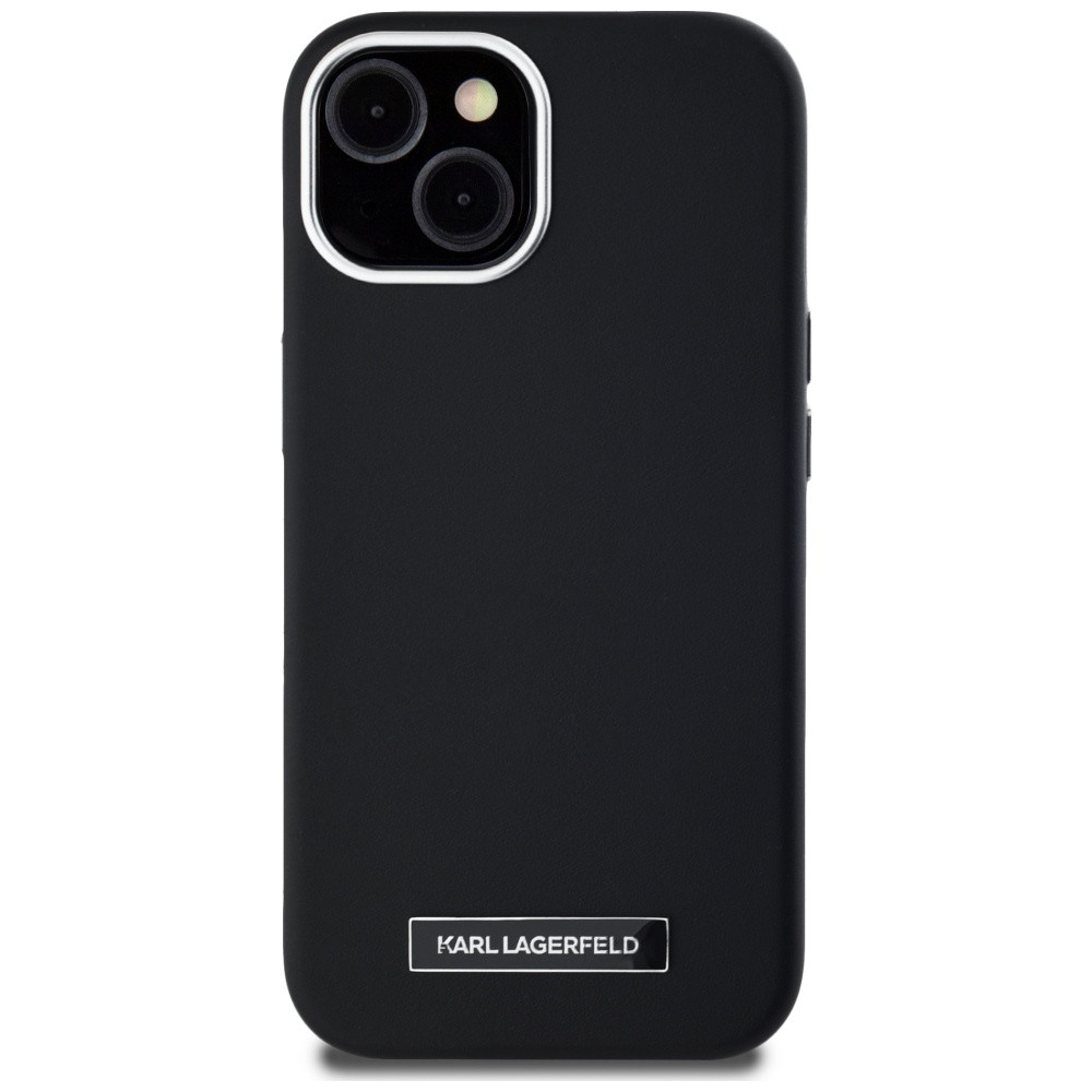 Karl Lagerfeld FW Metal Plate iPhone 15 hátlap tok kameravédelemmel, MagSafe, fekete-ezüst
