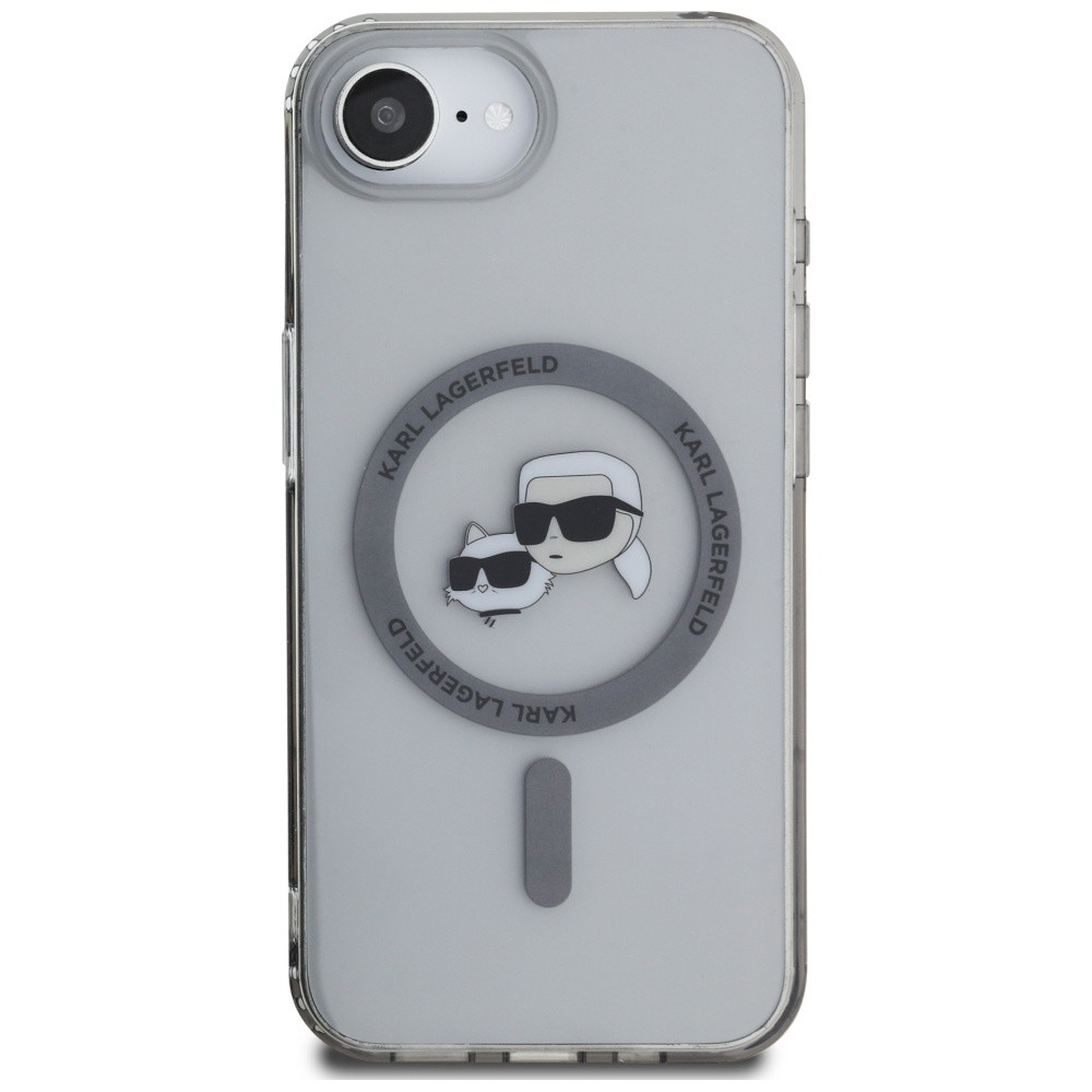 Karl Lagerfeld IML Metal Karl & Choupette Heads iPhone 17e / iPhone 16e hátlap tok, MagSafe, fekete