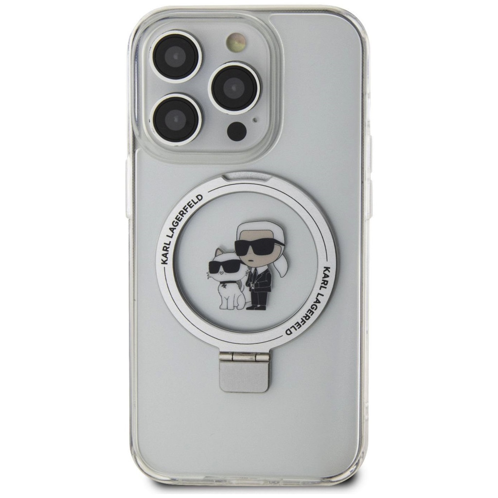 Karl Lagerfeld Ringstand Karl and Choupette iPhone 15 Pro Max MagSafe tok kitámasztóval, fehér
