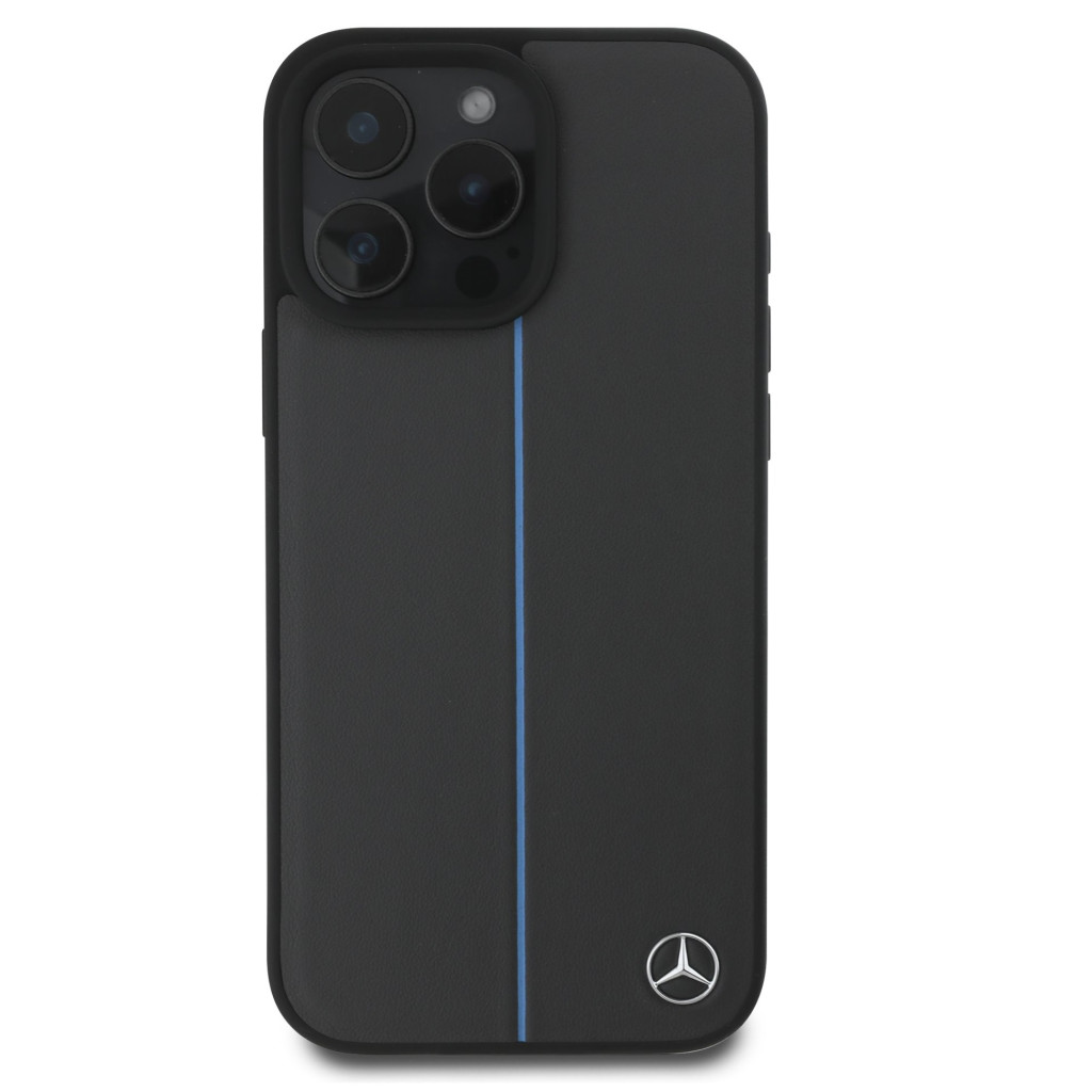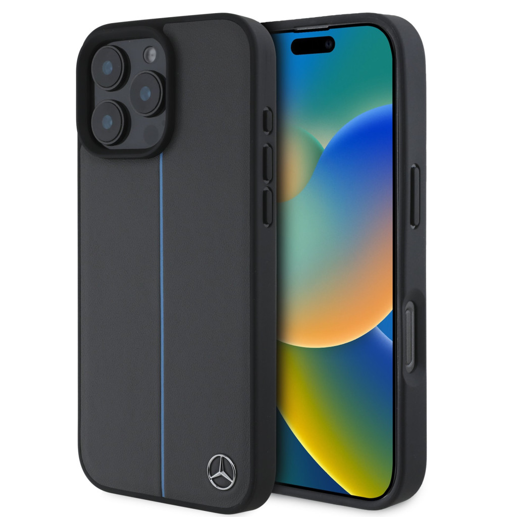 Mercedes Leather Blue Stripe Apple iPhone 16 Pro MagSafe kompatibilis tok, szürke-kék