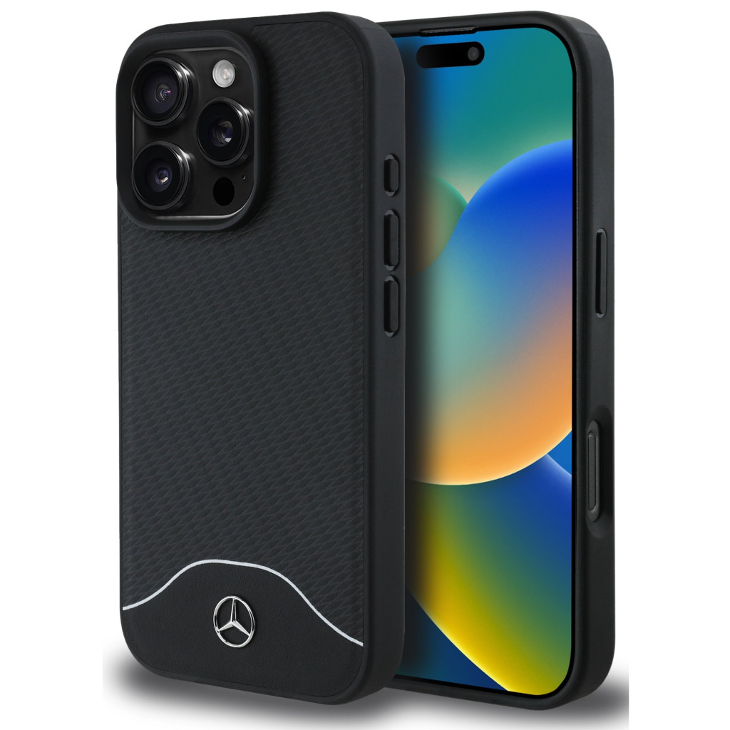 Mercedes Wood Imitation and Smooth Leather Apple iPhone 16 Pro MagSafe kompatibilis tok, fekete