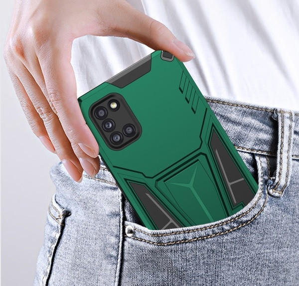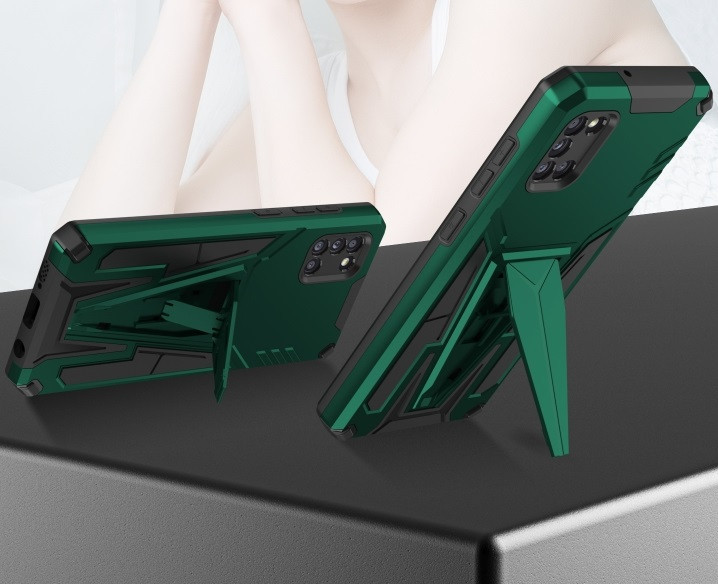 Motorola Moto E7 Power / E7i Power, Műanyag hátlap védőtok szilikon belső, közepesen ütésálló, kitámasztóval, Wooze Supportive Care, zöld