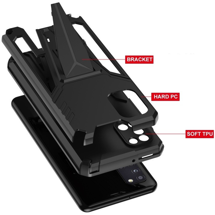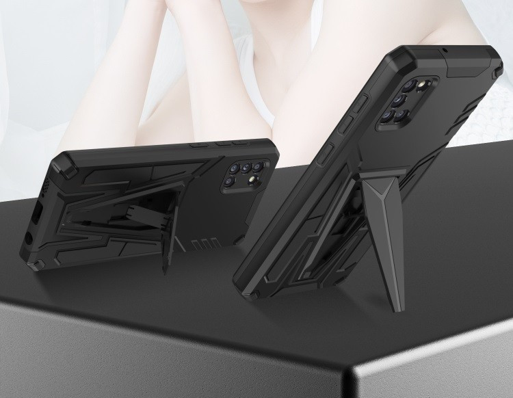 Motorola Moto G 5G, Műanyag hátlap védőtok szilikon belső, közepesen ütésálló, kitámasztóval, Wooze Supportive Care, fekete