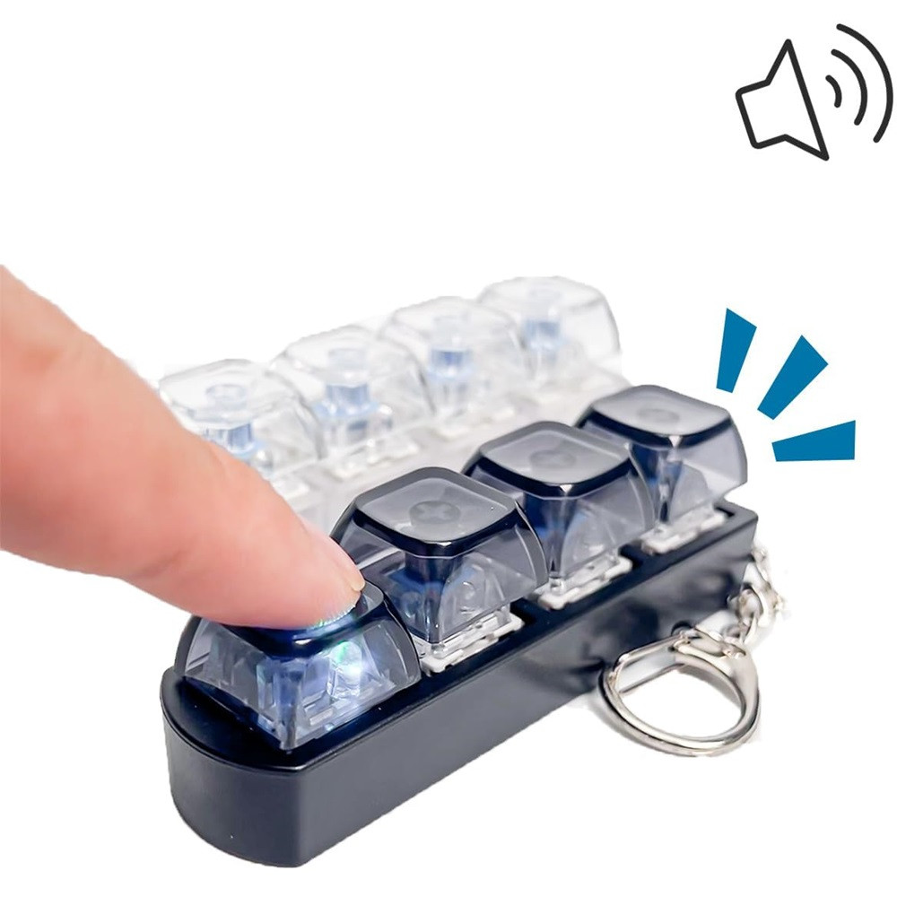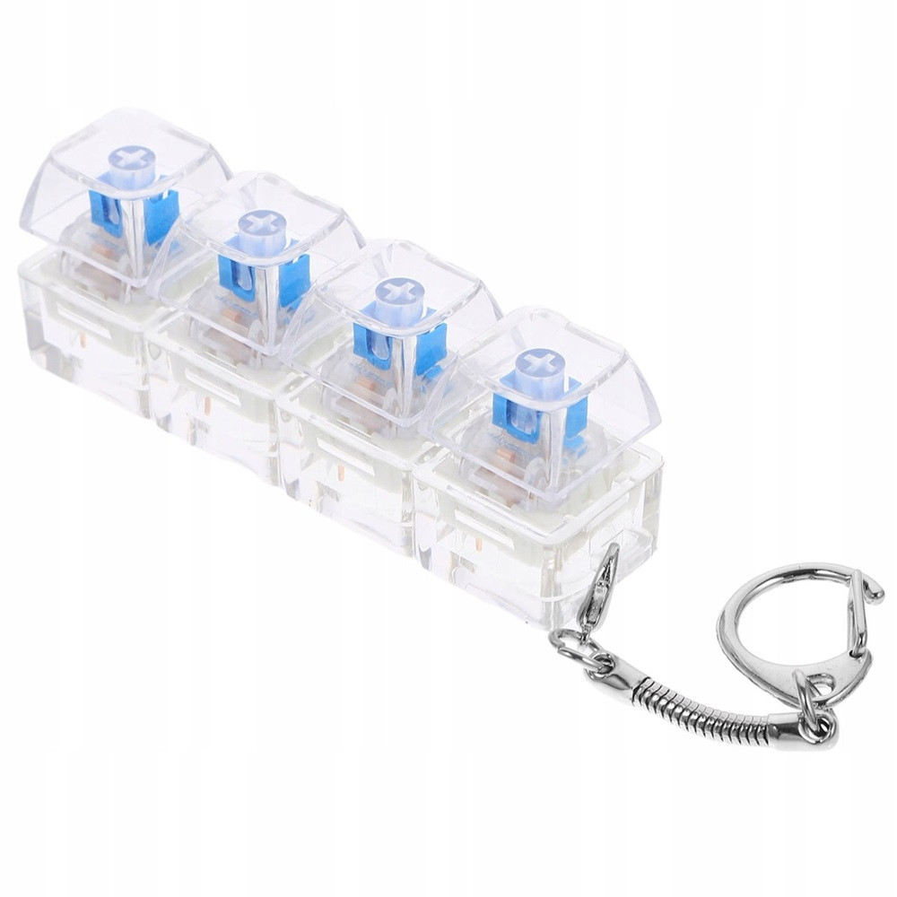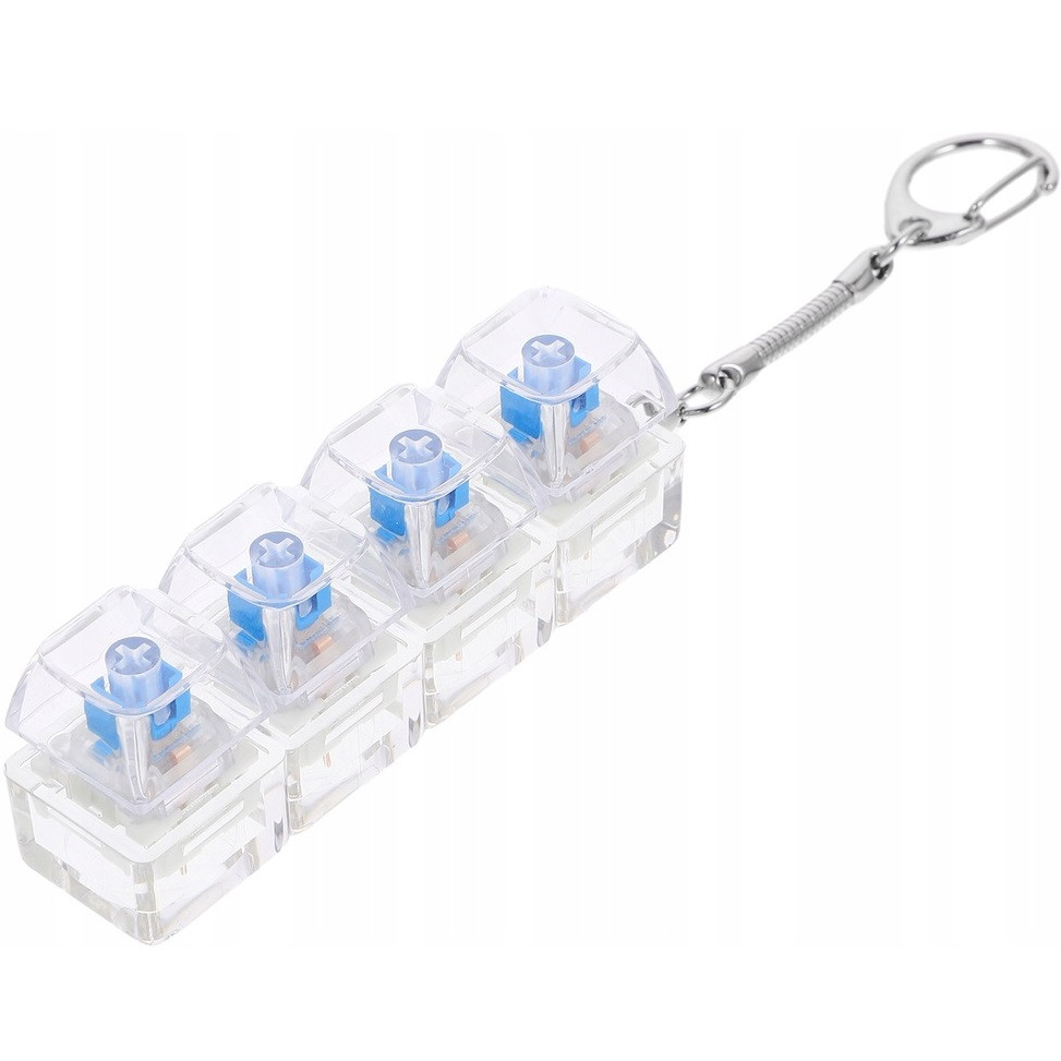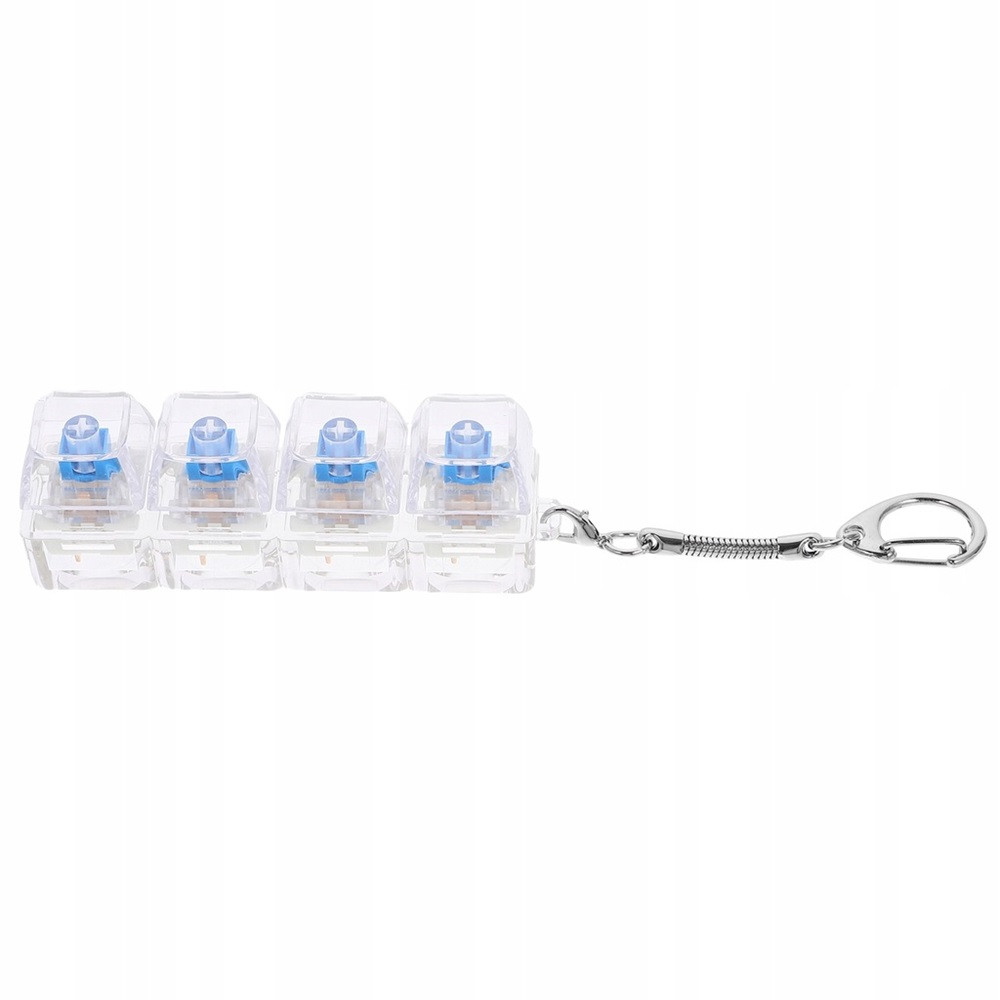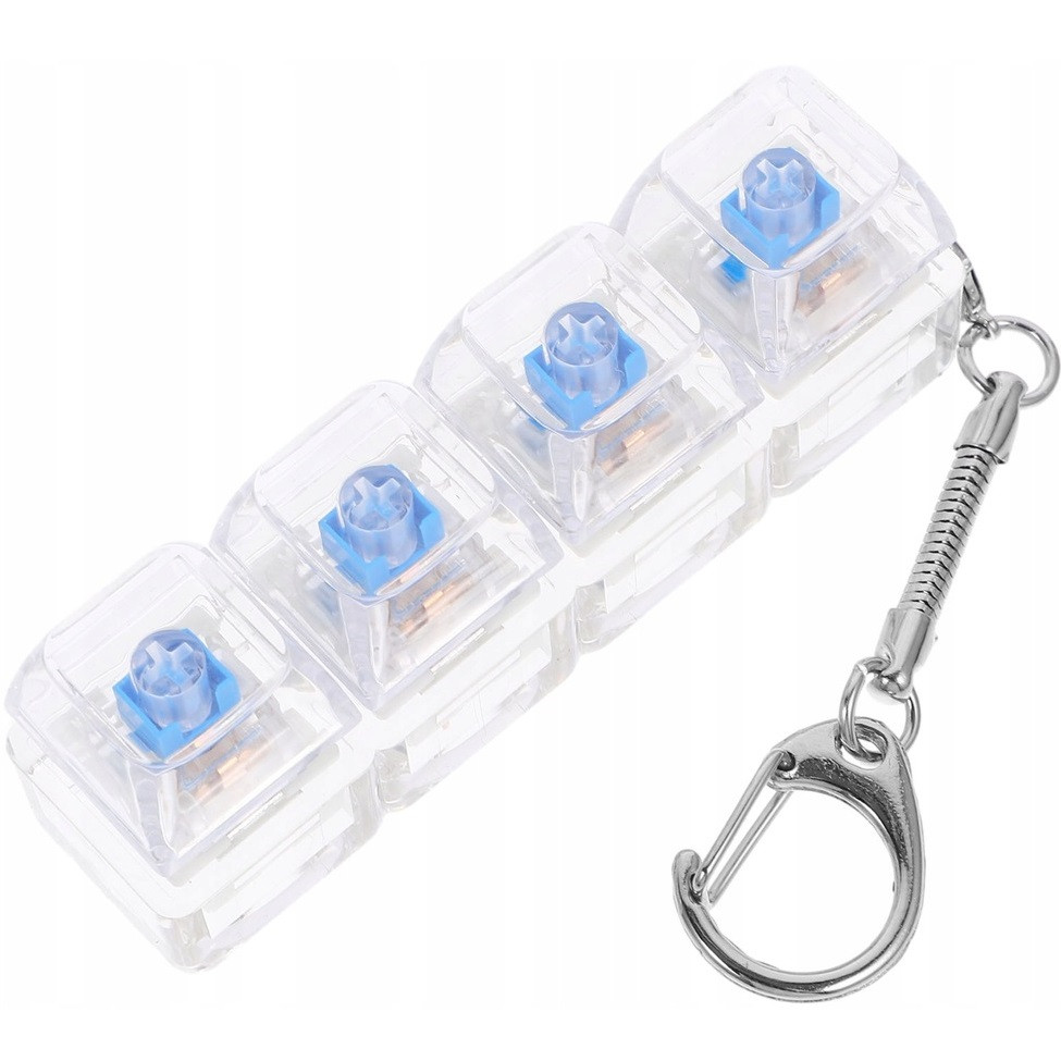 Stresszoldó billentyűzetes kattintós játék + kulcstartó, 4 billentyűs, átlátszó/kék