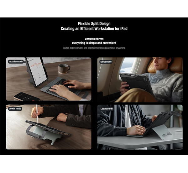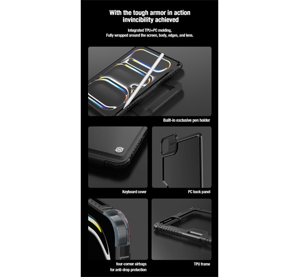 Nillkin Bumper Go iPad Pro 11 2024 / 2025 billentyűzetes hordozható tok háttérvilágítással, fekete