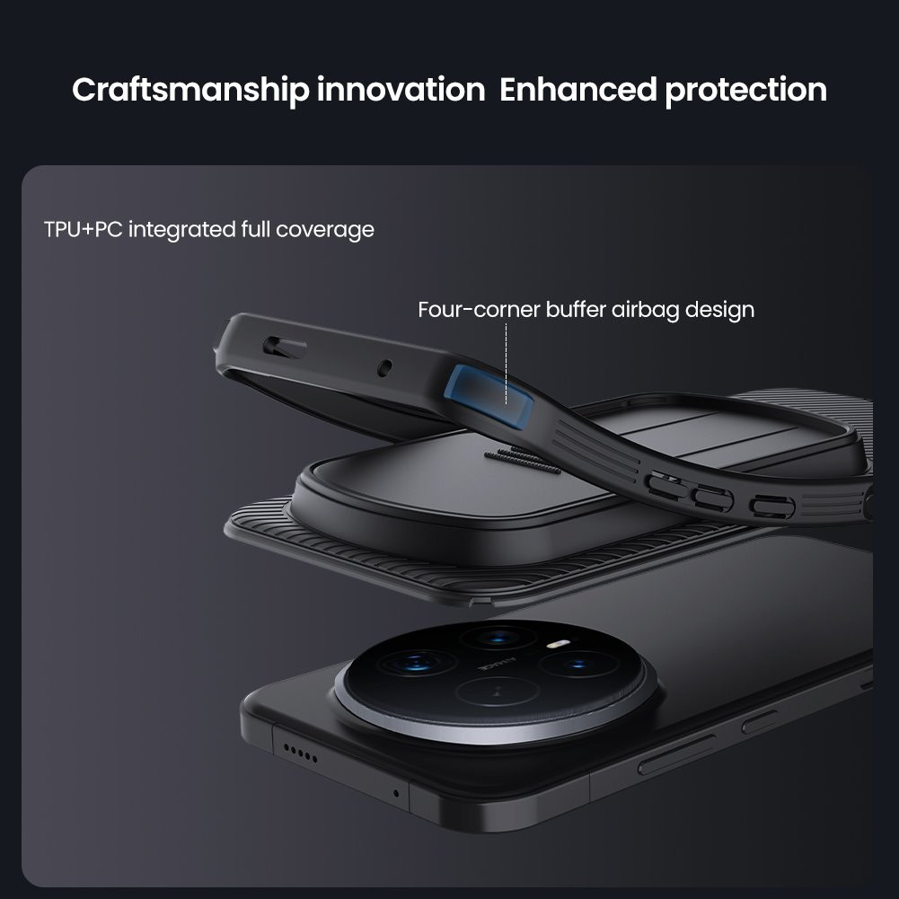 A Nillkin CamShield PRO egy egyedülálló tok csúszó kamerafedéllel. Ezenkívül a klasszikus CamShield-hez képest egyedülálló, mivel két anyagból áll. A tok hátsó része erős és tartós műanyagból készült, beleértve a kamerafedelet is. A tok kerete lágyított TPU műanyagból készült, hogy a telefon élei és sarkai a legjobb védelmet élvezhessék.