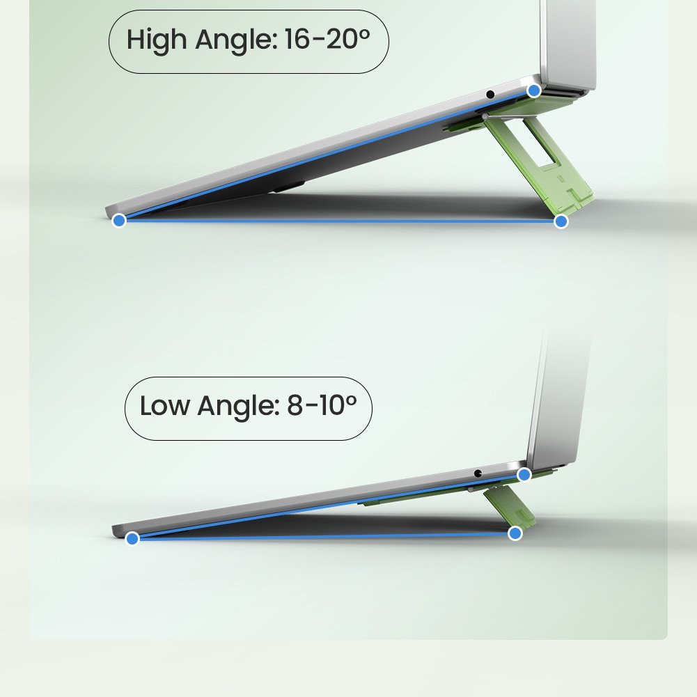 A magas (16-20°) és alacsony (8-10°) szögek között választhat, így megtalálhatja az optimális pozíciót az íráshoz és a képernyő nézéséhez, ami segít a helyes testtartás fenntartásában és a hát- és nyakfájdalmak megelőzésében.