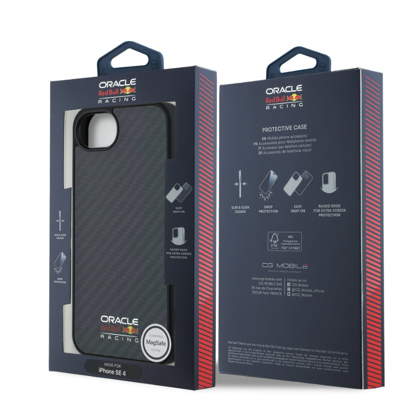 Red Bull Carbon Shiny Logo MagSafe hátlap - A stílus és a teljesítmény tökéletes kombinációja! Lépj be a sebesség és a precizitás világába az eredeti Oracle Red Bull Racing borítóval, amely csúcsminőségű védelmet nyújt telefonodnak.