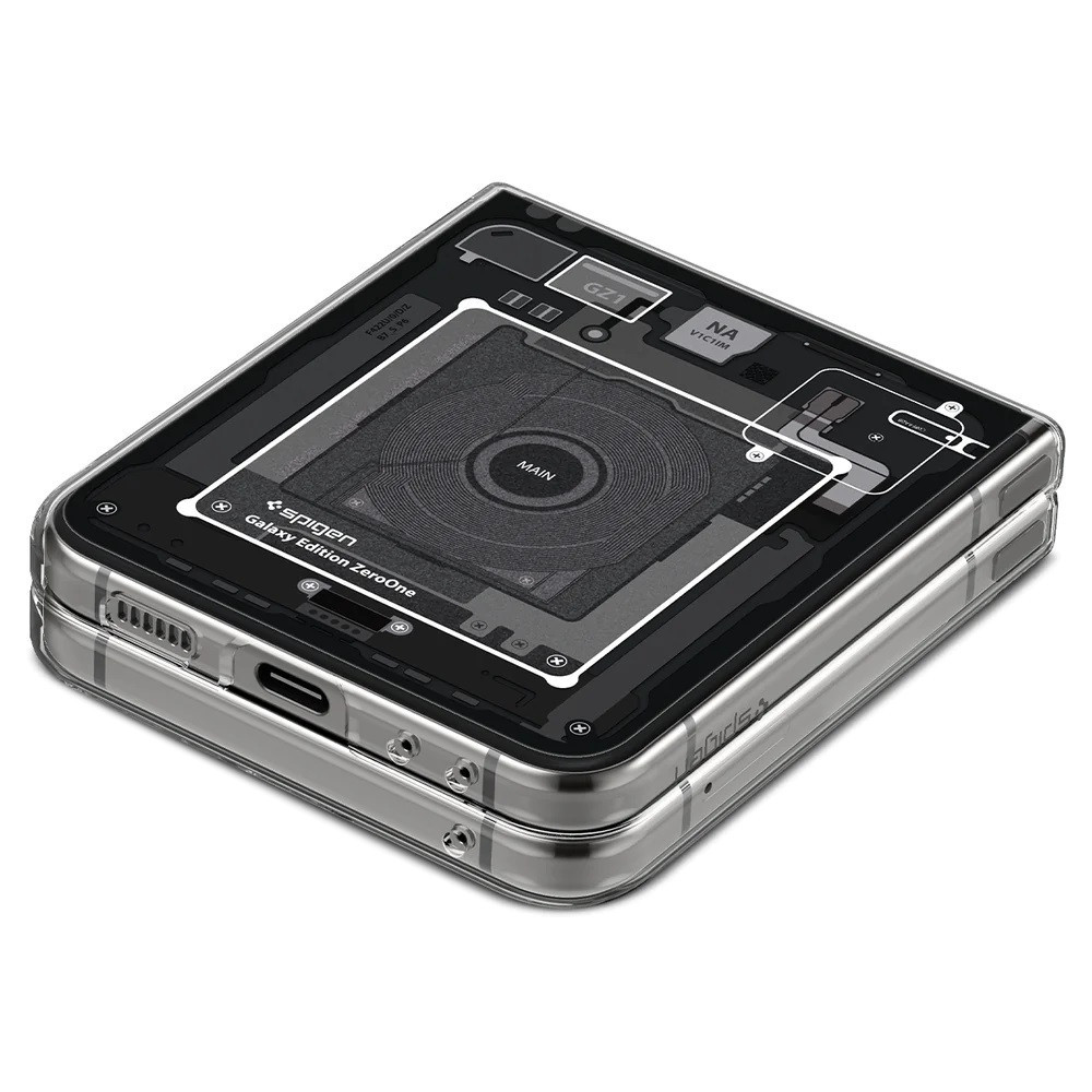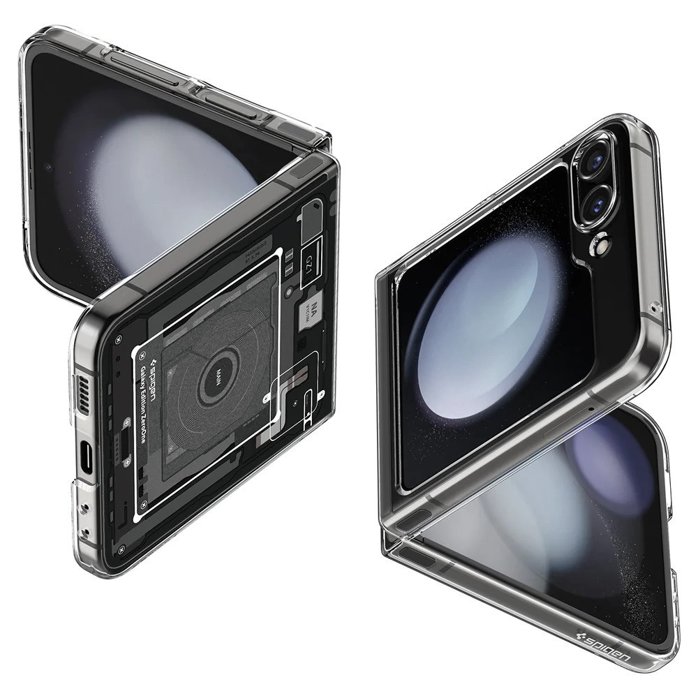 Samsung Galaxy Z Flip5 SM-F731B, Műanyag hátlap védőtok + szilikon keret, Telefon belső minta, Spigen Airskin Zero One, átlátszó/füst