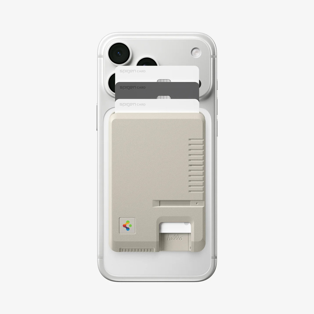 A legendás Macintosh 128K ihlette, floppy lemez stílusú díszítéssel, vintage billentyűzet gombok részleteivel és újragondolt Spigen logóval rendelkezik, így igazi retro megjelenést kölcsönöz, miközben a modern MagSafe kényelmet is biztosítja.