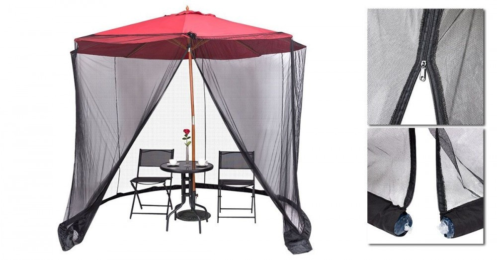 A kellemes kerti pihenést és az esti bulikat megzavarhatják a repkedő rovarok és szúnyogok. Ilyenkor különböző trükköket próbálunk meg bevetni, irtó szereket, fákjákat használunk. A napernyőre helyezhető szúnyoghálóval elkerülhetjük a zavaró bogarakat és vegyszereket sem kell használnunk Egyszerűen a napernyő köré kell rögzíteni és kényelmesen el is foglalhatjuk helyünket. Áttetsző szellős anyagból készült, cipzárral záródó bejárattal, vízzel tölthető aljjal, ami megakadályozza a háló lebegését. A szúnyogháló mérete: 2,74 méter.